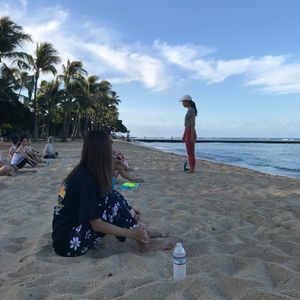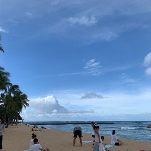 ハワイに到着した次の日に予約していたこともあってバス乗り場を探すのに時間がかかり10分ほど遅れての参加でしたが、インストラクターの方が優しく対応してくださったので、気持ちよく参加できました。初心者にも真似しやすいポーズだったので体の硬い私でも参加することができました。早朝なので暑くなく、波の音を聞きながら、気持ち良い朝を過ごせるのでとてもオススメです。私はヨガが終わった後にアサイーボウルを食べたんですが、汗をかいた後のアサイーはとても美味しかったです(^^)写真は参加後にビーチで撮った写真です。
