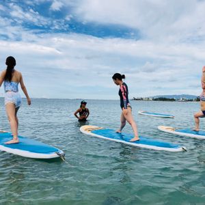 初めてサップヨガを6人で体験させてもらいました。初心者でも簡単に乗れるボードを使って、楽しく体験することができて、またやってみたいと思いました。但し海に落ちても大丈夫な格好と荷物は必要最小限で!