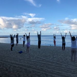 スタジオヨガレッスンは毎週受けていますが、憧れのハワイでのビーチヨガを初体験。どこまでも青い空と海と波の音の中のヨガは最高でした。インストラクターの方もハワイらしい素敵な方で、終始リラックスした中でリードして下さいました。次回も体験してみたいと思います。