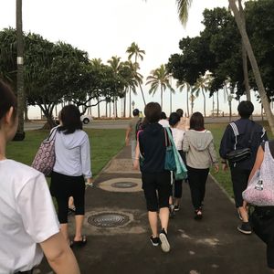 朝6時50分まだ暗いうちから、動物園の入り口前集合。みんなでビーチへ移動。持参したバスタオルを砂浜の上に敷いて、ヨガ開始。明るくなってきた青空の下、波の音を聞きながら、涼しい風を感じながら、インストラクターの指示に応じてヨガのポーズを少し汗ばみながら、頑張ってとっていると、すぐ横を白鳩がのどかに歩いていきます。朝早いので、ビーチも空いていて、とても気持ち良かったです。ヨガ自体も分かりやすく、参加者誰もができるものですし、もしできなくても無理にしなくても良く、しんどくなれば休んでいても良いという気軽な感じでした。所要時間は90分。朝食前の習慣にしたいですね。ワイキキで偶然出会った知り合いにも強く薦めておきました。