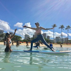 SUPヨガは、普段使わない体幹も鍛えることが出来ます。またハワイの海で思いっきりポーズをすると本当に気持ちがいいです。