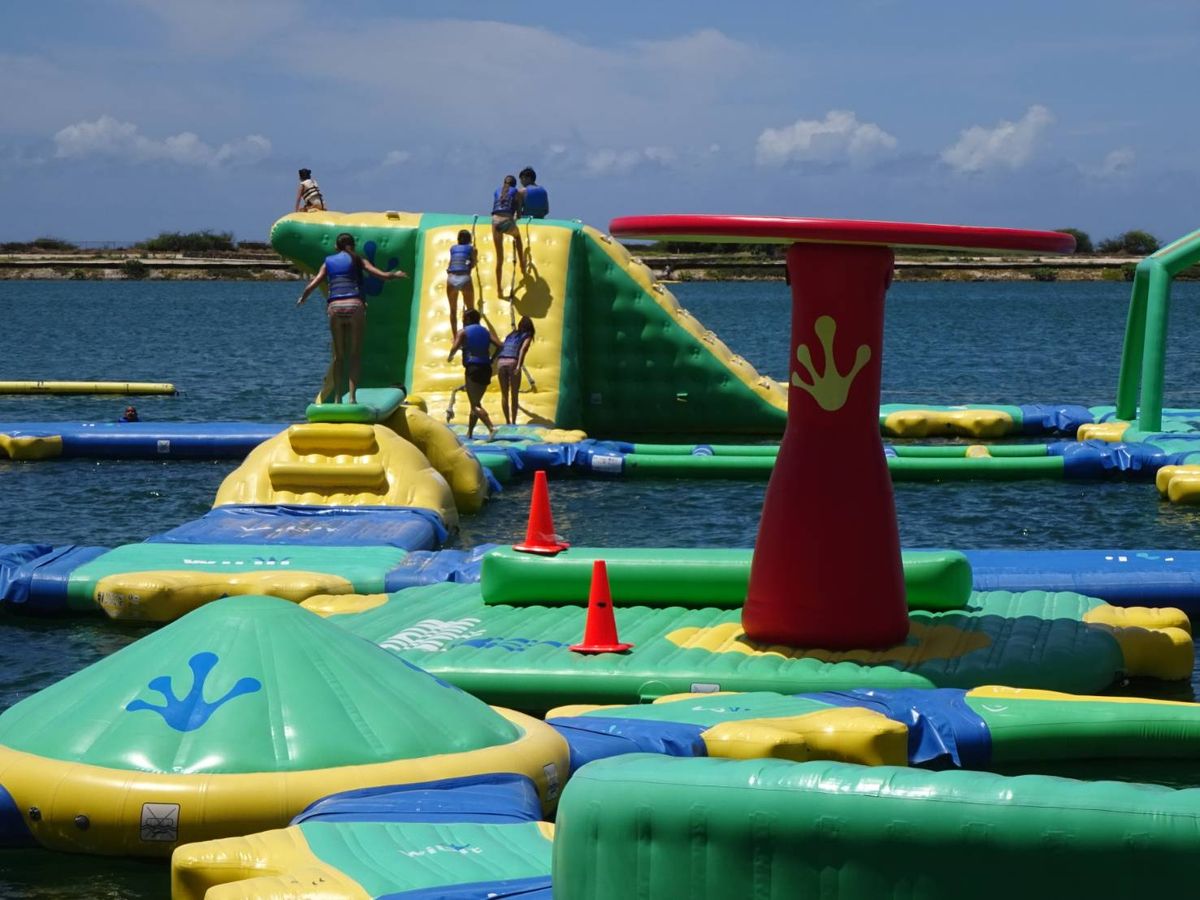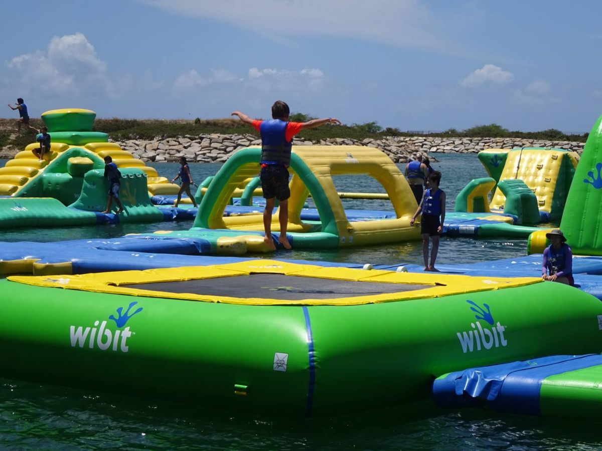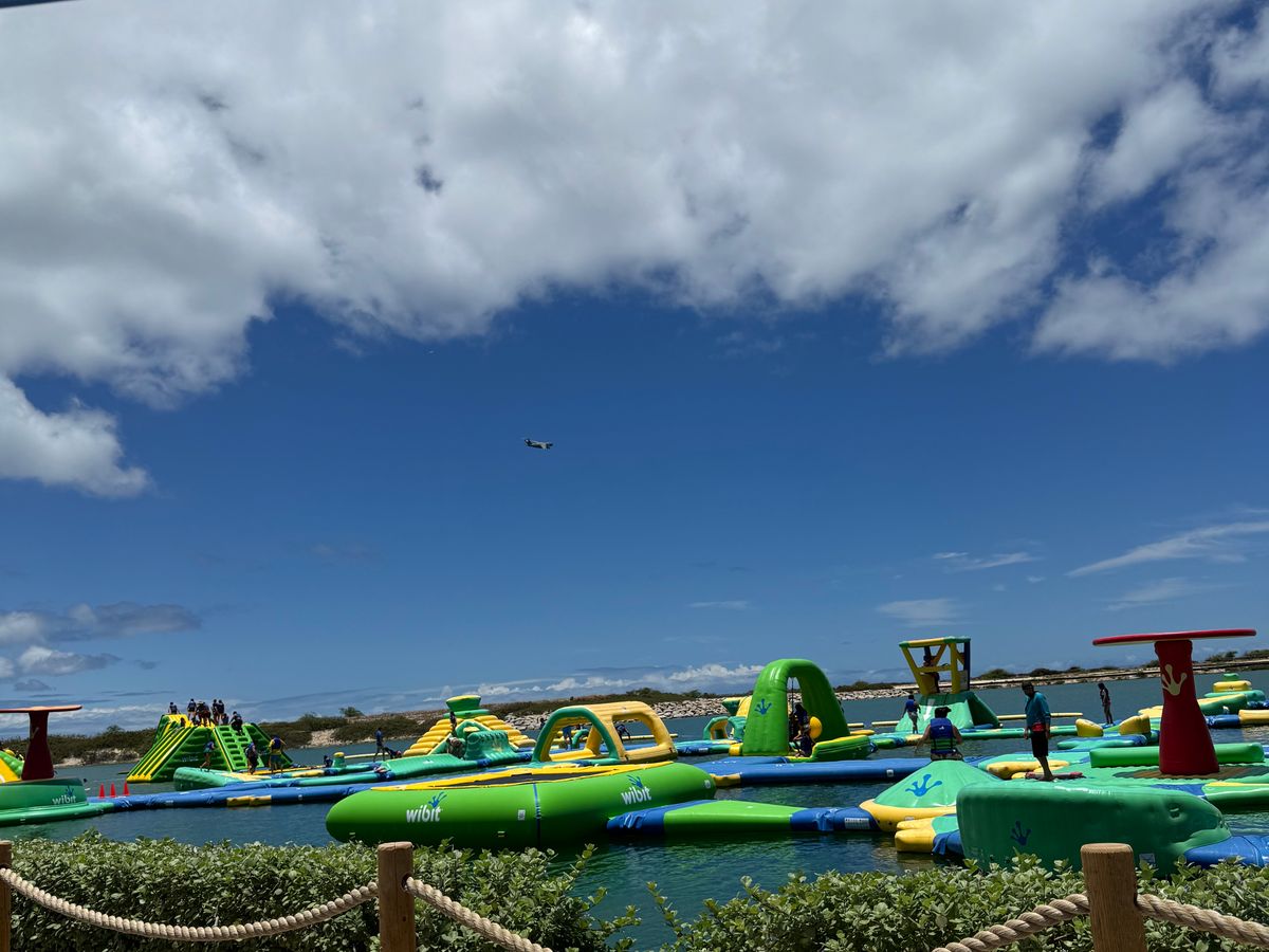 以前沖縄の万座ビーチで水上アスレチックをやりましたが、WaiKaiの方がアスレチックが広く、またスリリングなものが多かったです。特に巨大滑り台は大人気でした。