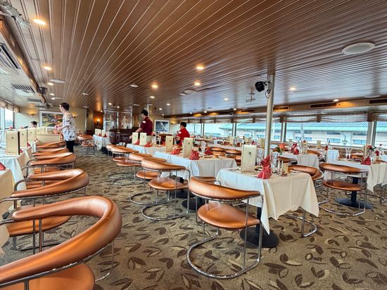 今回の数々の不手際は、明らかにホールスタッフの人数不足によるもので、全くオペレーションが機能していなかった。必要なスタッフ数の半数以下だったように思われる。予約状況等から、当日の乗船客数は事前にわかるはずなので、原因は運営の問題と思われる。庇うわけではないが、スタッフの方は大汗をかきながら小走りで動き回り頑張っていて、あちらこちらで頻発するクレームの謝罪に追われて、見ていてお気の毒にすら思った。
