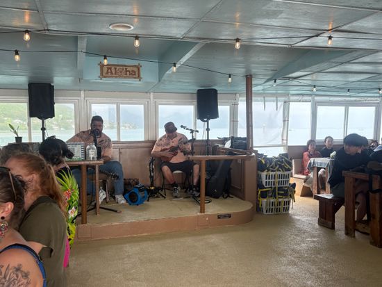 同伴者が初の乗船。生憎の天候でサンセットは見られてませんでしたが、生演奏や食事、夜景のワイキキなどの非日常が良かったです。新婚旅行の方も大勢おりました。写真もサービス(日本人限定?)があり、台紙に入れて貰えました。良い記念になると思います。