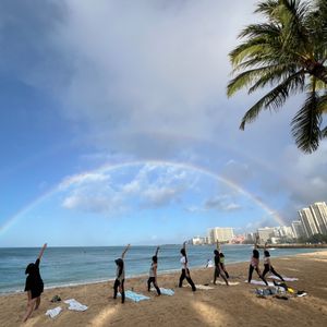 お天気イマイチなワイキキでしたが、ダブルレインボー見れて感激!波の音を聞きながらのヨガ癒されました!