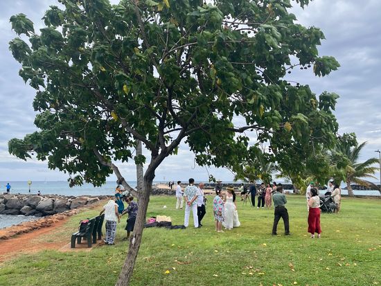 場所はアラモアナ・ビーチで、ワイキキから車で約15分ほどです。私たちはローカルバスを利用しました。「Ala Moana Bl + Opp Kamakee St」で降りて、集合場所までは徒歩5分ほどです