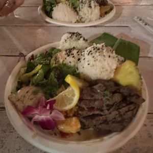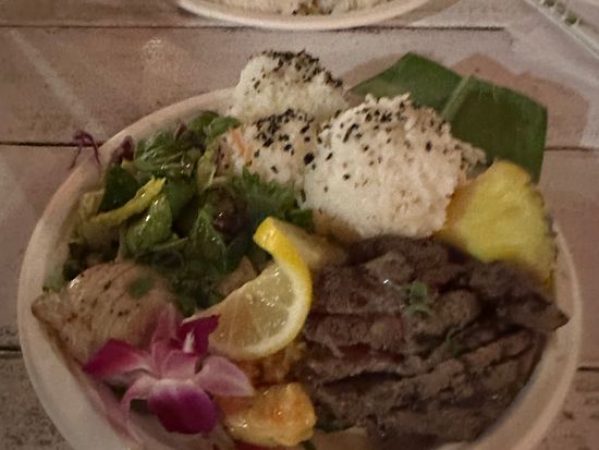 滞在ホテルへ送迎、夕食プランはワイキキビーチの有名なお店でステーキ、メカジキ、ガーリックシュリンププレート。海外からのお客様も来る繁盛店でした。