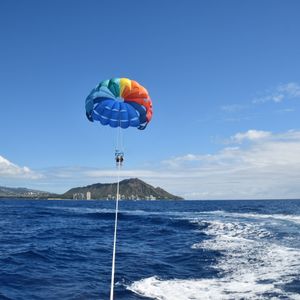 ハワイの最終日を前に、なにか手軽に限られた時間でできるアクティビティがないかと探していたところ、こちらに空きがありました。当日の午前中に予約したにもかかわらず、大変スムーズに手続ができ良かったです。受付場所はややわかりにくかったですが、社名の入ったバンが止まっているのが目印です。受付は若い女性2名(1名は日本語堪能)、クルーは若い男性2名で英語でしたが、コミュニケーションに問題はなかったです。スポットに着くまでは高速でのクルーズという感じでそれ自体が楽しかった。パラセイリングも、着地する際はどうするのかななど若干不安がありましたが、非常に上手に操作されて、自然とボートの後ろに着陸するようになってました。大変貴重な体験ができました。
