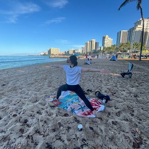波音を聞きながら、ビーチの風と高い空を見ながらのヨガレッスンは幸せな時間でした。satoさんのインストラクションがまた洗練されていて感じるものが沢山あるレッスンでした。癒しと浄化と体もしっかり使える経験者の方でも未経験の方にもかなりお勧めだと思います。前回のハワイで3回ほど朝のレッスンを受けていたのですがsatoさんレッスンは次も体験したいアクティビティになりました。