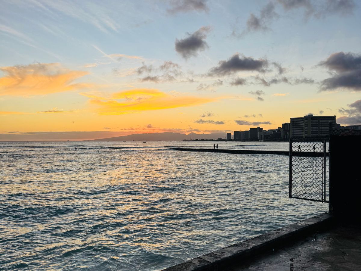 アラモアナのサンセット。素晴らしかった。お天気もバッチリで貴重な体験できました。暑くも寒くもなく気持ちの良い風の中整いました。