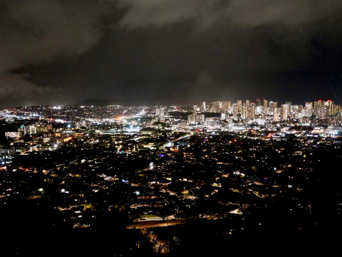 朝早くに集合で、ダイヤモンドヘッドの門が開く前に麓あたりにバスで到着。門が開くまで真っ暗だったので夜空が見られました。日の出見る前にこんな綺麗な夜空が見られるとはと思うくらいここで感動でした。
