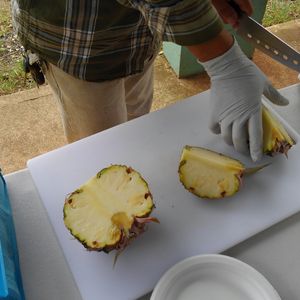 残念ながらこの場所ではパイナップルの栽培はしておらず、(試食と販売はあり)畑を見ることはできませんでしたがお土産に6個ほど買ってきました。