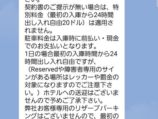 提携駐車場は正しい料金(20ドル)をしっかり確認してから入庫すると安心です。