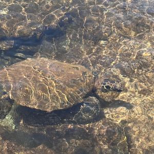 途中、ミニツアーで立ち寄ったバランスロック裏の岩場でウミガメを近くで見ることができました 昨年はサンライズシェルが取れるカイアカ・ベイ・ビーチでも見れましたが今年の方がたくさん 思いがけず楽しかったです