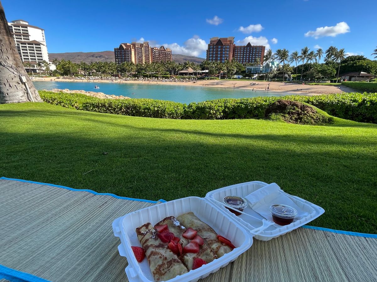 アウラニディズニーのビーチでテイクアウトした朝食を食べるのは最高の時間でした!