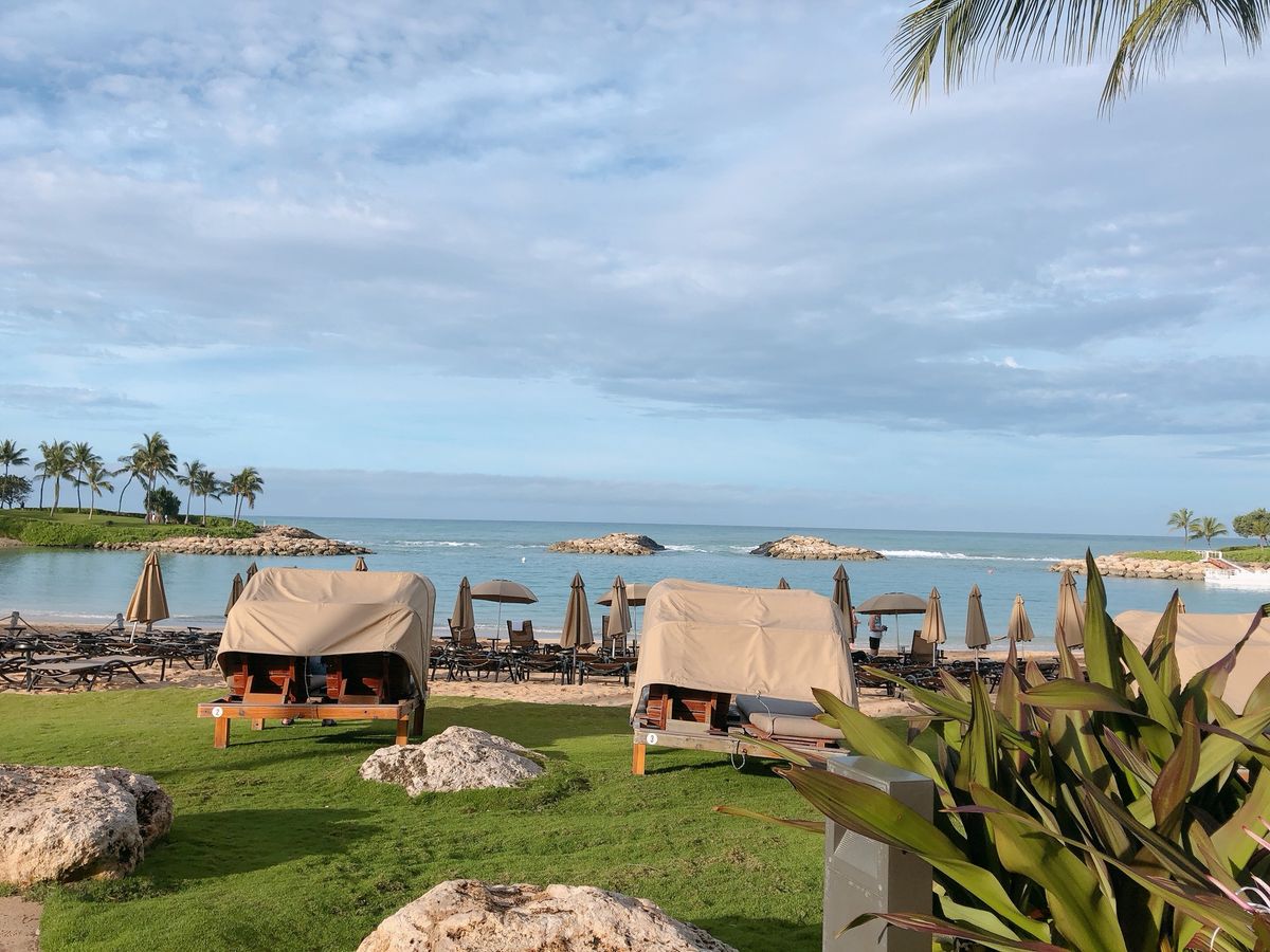アウラニは海も綺麗、ホテルのプールは使用できませんが、ビーチは使用できるので、夏は水着持参をおすすめします。また、予約は別ですが、マカヒキも、とってもおすすめです!気軽にキャラクターと写真が撮れ、本当に、行ってよかった!