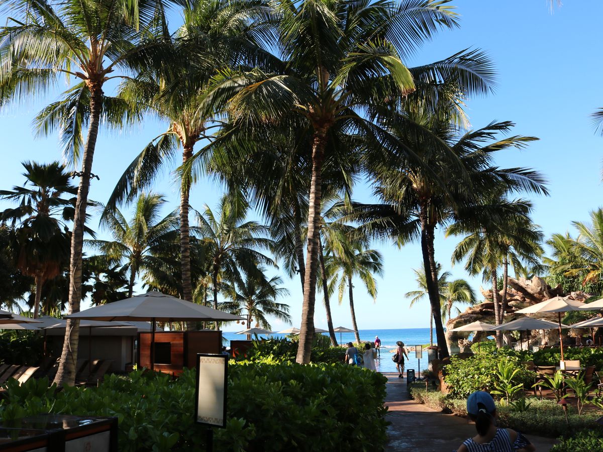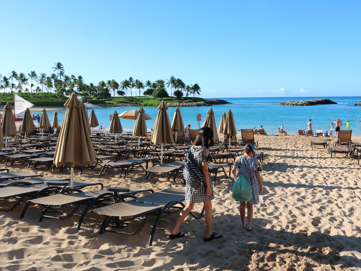 アラモアナビーチパークで海も見ながら50分ほどで到着。滞在時間5時間!長めかなと思ってたけど楽しすぎてあっという間でした。ブレックファストの予約はHPから簡単に行えたので自分でしました。予約の時間までホテル内をぶらり。ホテル内は日本語OKのスタッフもたくさん居て10:45の予約だけど10時からチェックイン可能と教えてもらえました。ビーチまで歩いて行きましたが波も高くなくてビーチチェアも沢山あり宿泊客は海水浴をしていました。