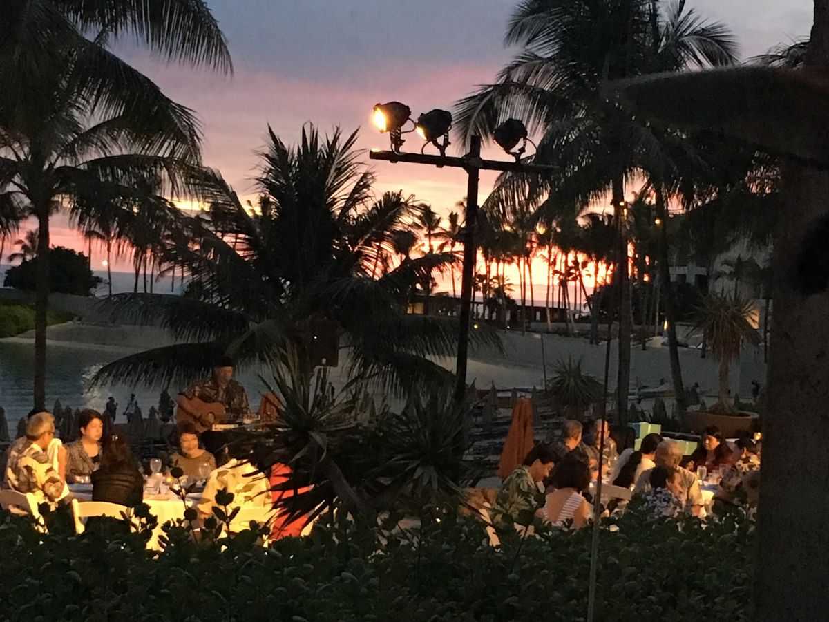 小さな子供連れの家族が多く、米国、欧州や日本から旅行者が多く、中国・韓国の団体の旅行者が少なく、落ち着いた感じで、ワイキキとは別世界でした。