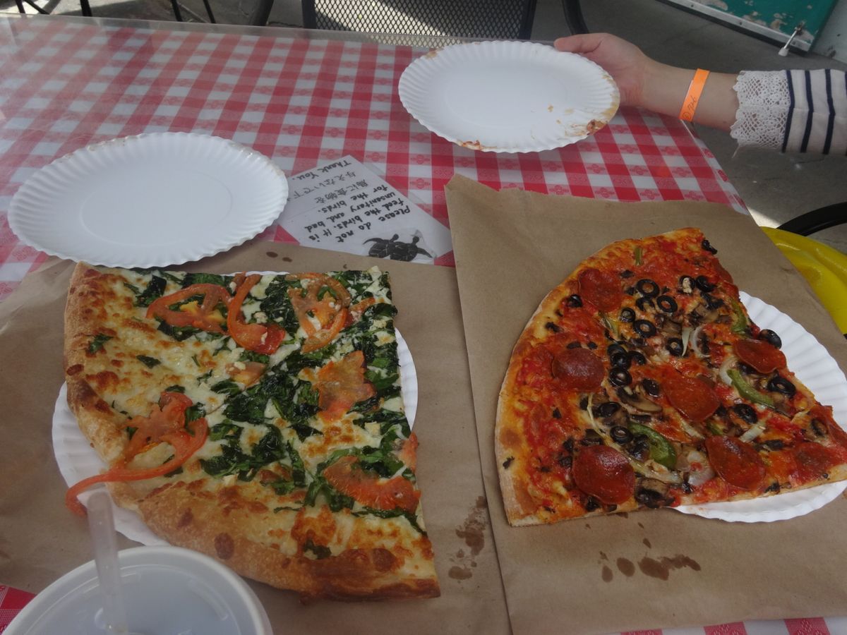 説明後、自転車を借りて、カイルアの街に散歩しに行きました。朝食はまだだったので、ブーツ&キモズのパンケーキを食べようと思い、行ったら定休日!行く前に確認しておけば良かったです。パンケーキは諦めて、その周辺でアサイーボウルを食べました。カイルアの中心地は、雑貨屋やスーパーなど、お店がいっぱいあるので、ぶらぶらするには最適でした。2時間ぐらい歩きまわり、その後、昼食で、ツアーに食事券がついていたのでピザを選びました。ピザはボリュームがあって、満足しました!