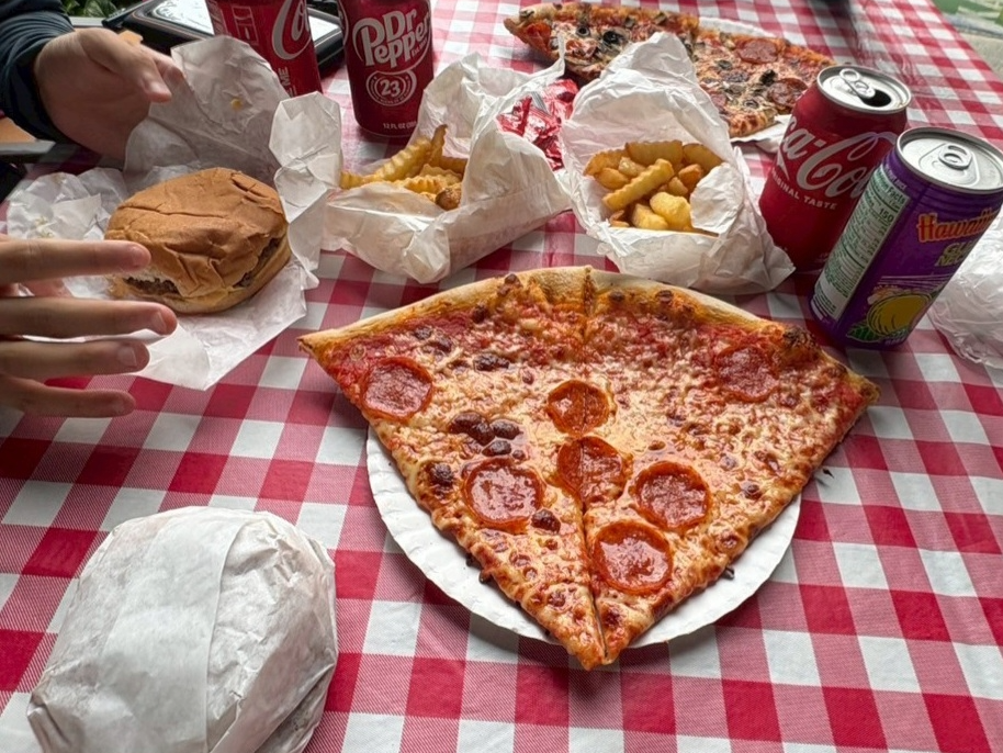 ランチはピザとチーズバーガーを選びましたが、ピザもバーガーも熱々で提供され、美味しかったです。