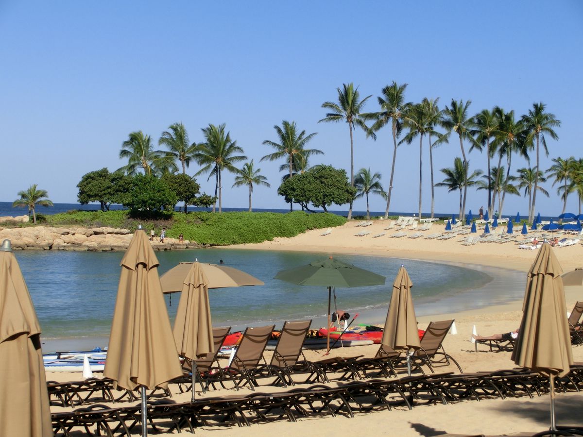 朝、7時前に迎えにきていただき、約1時間ほどでコオリナに到着! 朝なので人はまばらでしたが、海、空とも青く、周りのゴルフ場もあり、緑がいっぱいで、ワイキキとは違い静かでとてもいい場所でした。