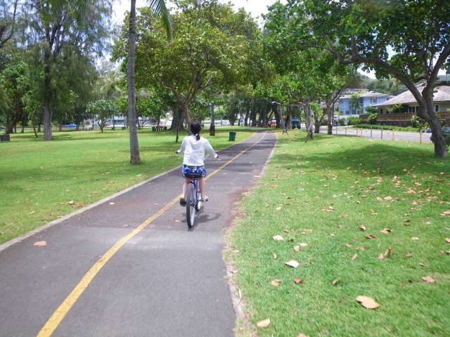 1時間ほどカイルアにいてから、レンタル自転車(カイルアセイルボード&カヤックで、ツアー参加者は1台11ドルくらいで借りれました)を借りて隣のラニカイビーチに行ってきました。