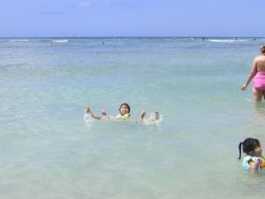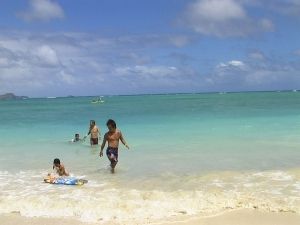 家族全員で行きました。前日、末っ子が熱を40度も出してしまい、半分諦めていましたが、医者に掛かったお蔭で平熱まで下がり、何とか行く事が出来ました。しかしアメリカの薬の利き方には驚きました。さて本題ですが、言うまでも無くココはオアフ1番の景観です。70過ぎの家のジーちゃんまでもが、ブギボーを気付いたらやっていた位の開放感最高のプライベートビーチです。昼は、ロコモコをビーチに持っていって、みんなで食べました。ちなみに、何種類か選べますが、ハンバーガーセットが1番良いようでした。ちなみに、カップルの方は、木陰に隠れて、愛を語るには最高の場所ではないでしょうか~自分も、新婚旅行の時にも来まして、今度家族が増えたら絶対連れてくるぞと心に決めた場所でした。そして今回4人の子供をつれてのカイルアでした。