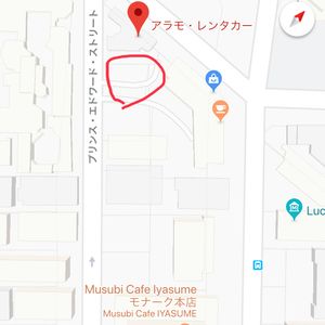 (画像の3枚目が返却場所です。レンタカーが停められている駐車場の裏手にあるので、心配な方は貸し出される前に確認しておくのが良いと思います。一方通行の道路なのでグルリと回る必要がありますが、日本の都心部の運転に慣れている方であれば不便さは感じないと思います)