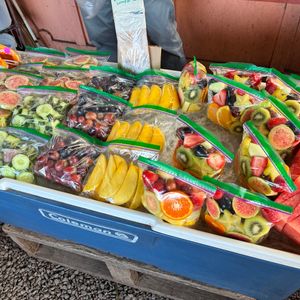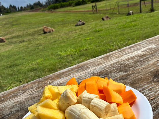 フルーツショップの試食もたっぷり。ワイキキで買うより安くて新鮮。オススメはパパイヤ!クーラーボックスも積んであるから安心して買えるよ。