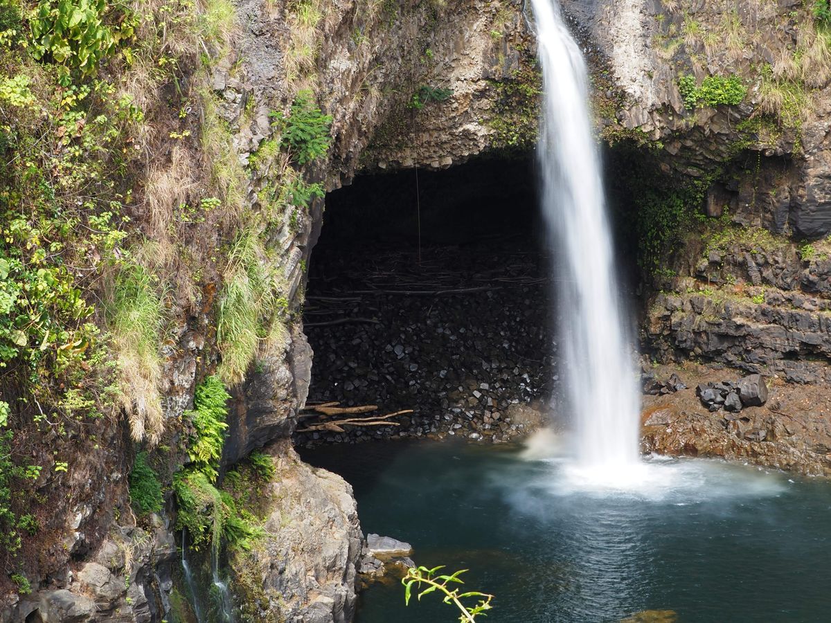 最初にヒロのいくつかのポイントを回ってから昼食の弁当を買い、虹の滝を観光した後、チョコレート工場で土産物を買いました。その後キラウエア火山と黒砂海岸を見て、キラウエア火山そばのボルケーノ・ハウス・ホテルに戻って土産物を買い、その後、溶岩チューブと南東の溶岩台地・海岸を見ました。行程の概要は以上のとおりです。