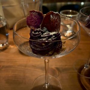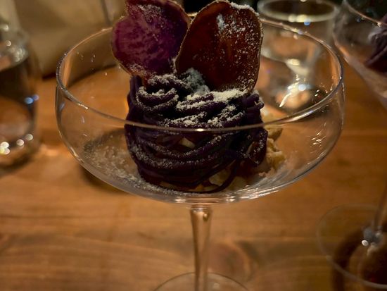 デザートの紫芋のモンブランとカシューナッツバニラアイス、マカデミアンナッツの相性も抜群でした。
