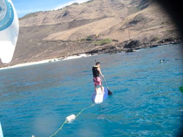 無料のフラレッスンは結構いろんな場所で体験できるので、フラレッスンの時間をこんなにとるのなら、最後の自由時間(シュノーケル、カヤック、パドルサーフィン)をもっと長く取ってくれた方が楽しめたのではないかと思いました。カヤックもパドルサーフィンも1台ずつしかないので、短い時間内だと一人につき5分くらいしか乗れなかったようです。