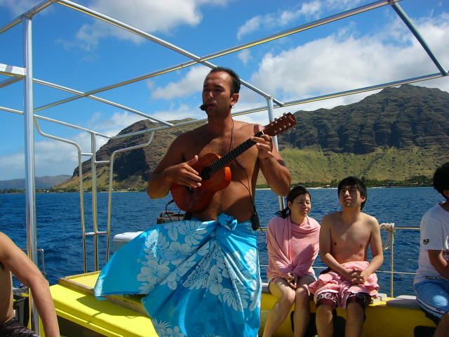 いるかにも亀にもきれいなお魚たちにもあえましたが、ずっと曇り空だったせいか寒くて寒くて…。全員ウエットスーツを借りていましたが、特に海からあがると、私を含めがたがたと震えている人が何人もいました。毛布を貸してくれますが、濡れるし体全体を包めるわけではないので、私はウィンドブレーカーを着てタオルと毛布をまきつけて、おむすび状態になっていました。天候によるでしょうが、寒がりの人はもう少し暖かい季節を選んだほうが楽しめるかと思います。ただ、現地のスタッフさんは終始ハイテンションで、歌や踊りで盛り上げてくれて、また、小さいお子さんが3人も参加していましたが、怖がらないように色々気を配っていて、プロ意識を感じました。陸にあがってから、少し離れた空き地でフラレッスンがありましたが、私的にはいらなかったかな。