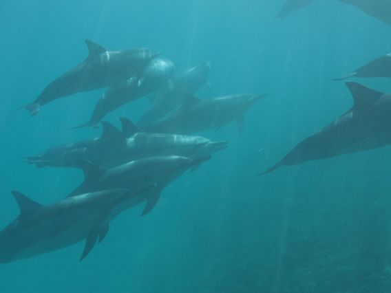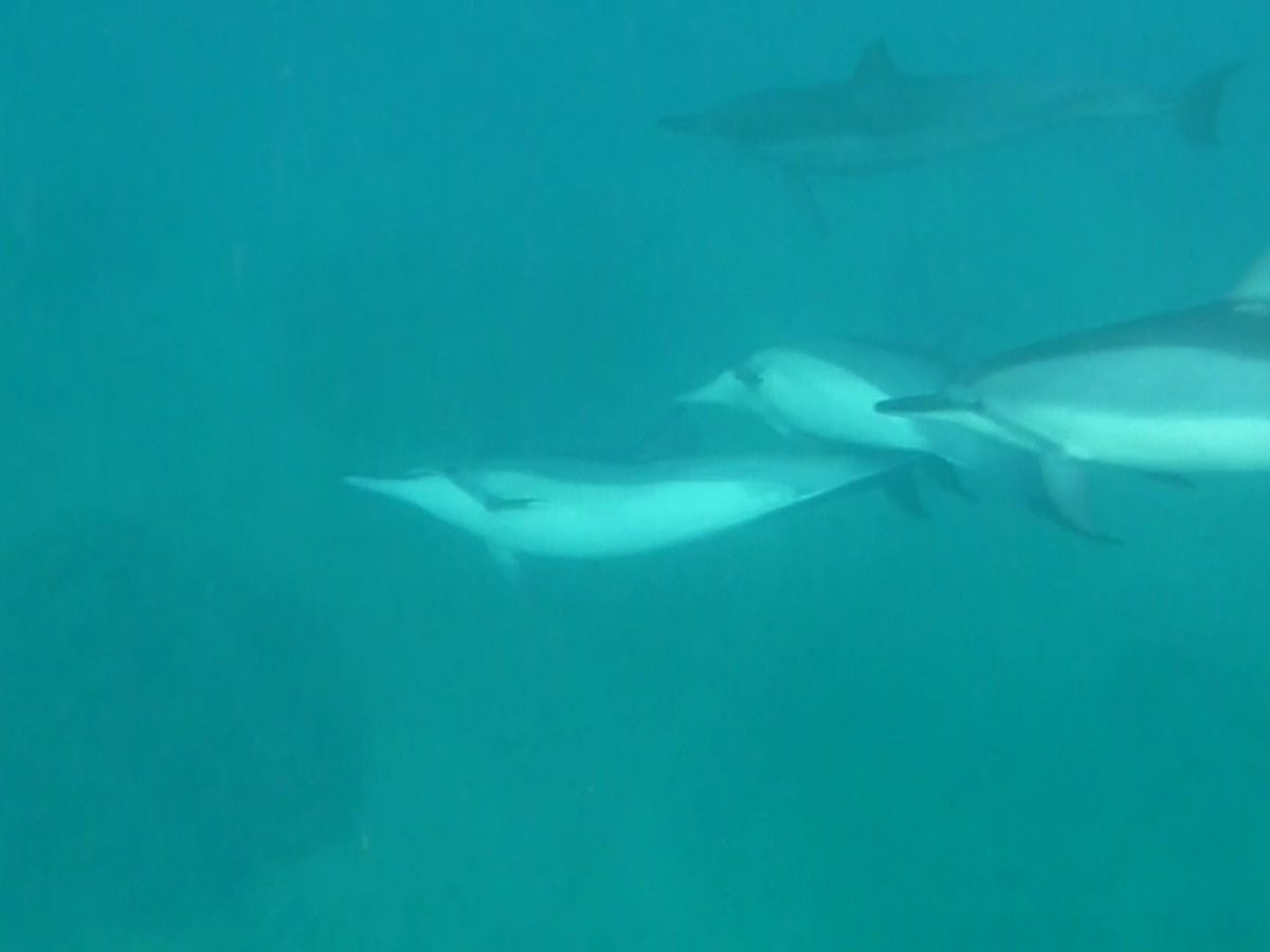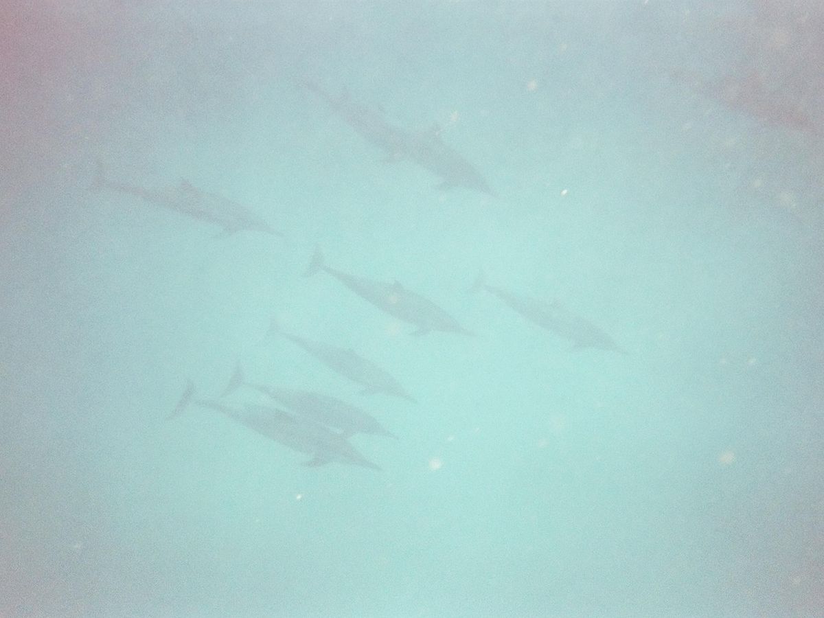 タイミングを見計らって水面へ。十数匹のイルカが下をすーと泳いで行きました。