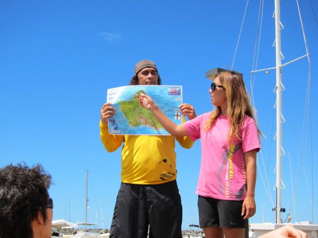 最悪イルカと遭遇出来なくても、船上スタッフのいろいろなパフォーマンス(ダンスあり、ギャグあり)があるので、それなりに楽しめるツアーだと思います。