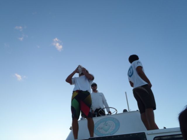 船に乗り、イルカポイントに到着するも他の船も何隻か待っていて自分達の番が来るのをひたすら待ちました。その間に何回かイルカの群れを見ました。スピンもしていたし、子供イルカも居ました。