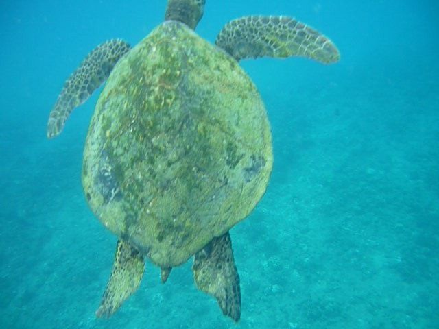 その後、海がめスポットに行きました。水深15mくらいのところで、下の方で海がめが3匹ほどゆらゆら泳いでました。顔を上げたらなんと!海がめが真横であたしと同じ目線で!泳いでます!ちょっと焦った☆でも可愛かったです。