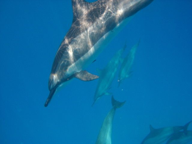 今回家族の結婚式にハワイへ行ったのですが、妻がどうしても野生のイルカと泳ぎたいということで早速申し込み。実際もぐってみると13匹のたくさんのイルカと3匹海亀と一緒に泳ぐことができて、同行した家族全員楽しむ事ができた思います。ただし、外洋なので波が高く、若干名の方は船酔いにかかった方もいられたようです。事前に酔い止め薬は、自信のない方は必須です。