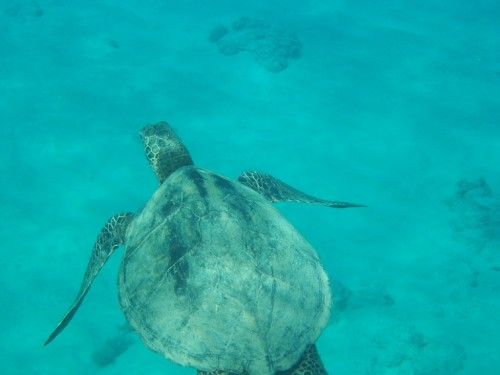 朝はイルカも寝ながら泳いでるらしい。この日はかなりゆっくり泳いでいるとか、でも全然追いつけない!その後、魚の多いポイントへ移動、そこでもシュノーケル、そしてタートルポイントへ。