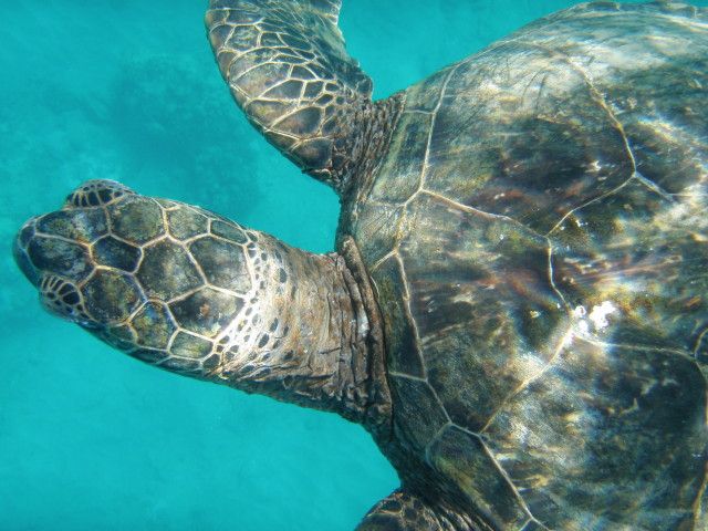 ウミガメはハワイの海の守り神として、とても大事にされている。触ったら罰金50万とかww