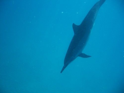 野生のイルカはすぐに現れて、あとはボートから順番に次々飛び込んでいって。どんどんイルカの群れが来て追っているというより、下を通って行く感じでした。初めて生でイルカを見て感動なのに、声まで聞こえてきてもっと感動でした♪