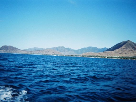 なので、それからイルカを探してひたすら船を走らせました。陸に沿って北上し、けっこう遠くまで行き、やっとイルカを見つけました。