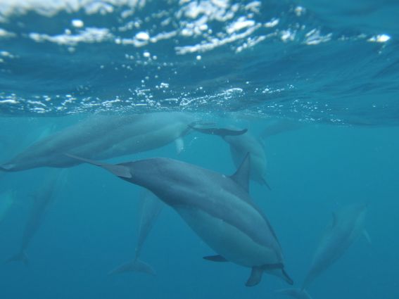 今回のイルカちゃんは今まで一緒に泳いだスピナーちゃんとは種類が違うバンドーイルカちゃんでしたが、迫力満点!!海の中で目が合うの!!こっちを、ちらっちらっって♪1頭じゃなくって何頭も!!感動でした。イルカちゃん達の声もしっかり聞えるし。