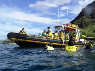 初めてのハワイ、娘と甥、親戚の親子と、5人で参加しました。12月は寒いかも?という情報はあたってましたが、ウエットスーツの貸し出しもあり、いざボートに乗り込み、5分もするとイルカの群れに、会うことができ大喜び。そのあと、海のにごりのため、海に入らずにボートで島の周りを観光、ボートは海の上を飛ぶように、ジットコースターのようで楽しかった。皆で喜んで帰りました。又、機会があれば参加したいです。スタッフの、皆さんも色々親切にしてもらえて、うれしかった。ありがとね。