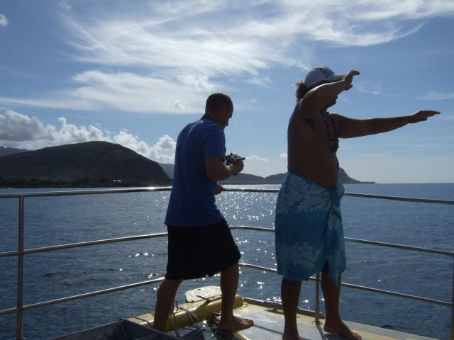 船が出るとすぐの鯨のお出迎えにはびっくり。ほどなくイルカとも遭遇。そっと近寄って皆で海に入り一緒に泳ぐことができました。1回目は近くに寄れませんでしたが、2回目は自分のすぐ下を泳ぐイルカを見ることができました。そして、亀ポイントでのシュノーケリング。亀はすごく近くまで寄ってきてくれて、南方の海水魚も堪能しました。そして、そのまま港に帰るのかと思ったら、そのあとも、鯨を探してオアフ島のかなり西の先端のほうまで船を走らせてもう一度鯨を見ることができました。