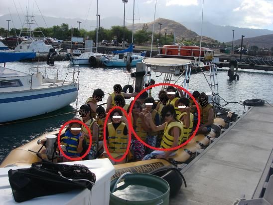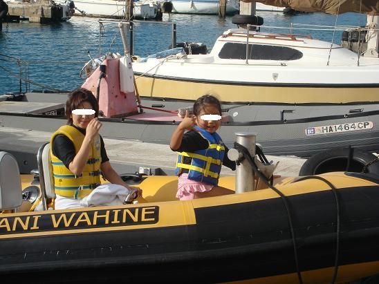 私立イルカ中学を選んだのは、スピードボートであること(出発時間もほかよりゆっくり)、イルカやウミガメを見るだけで、よけいなものがないので早くホテルに戻れる(午後からも何か予定が立てられる)ということで決めました。