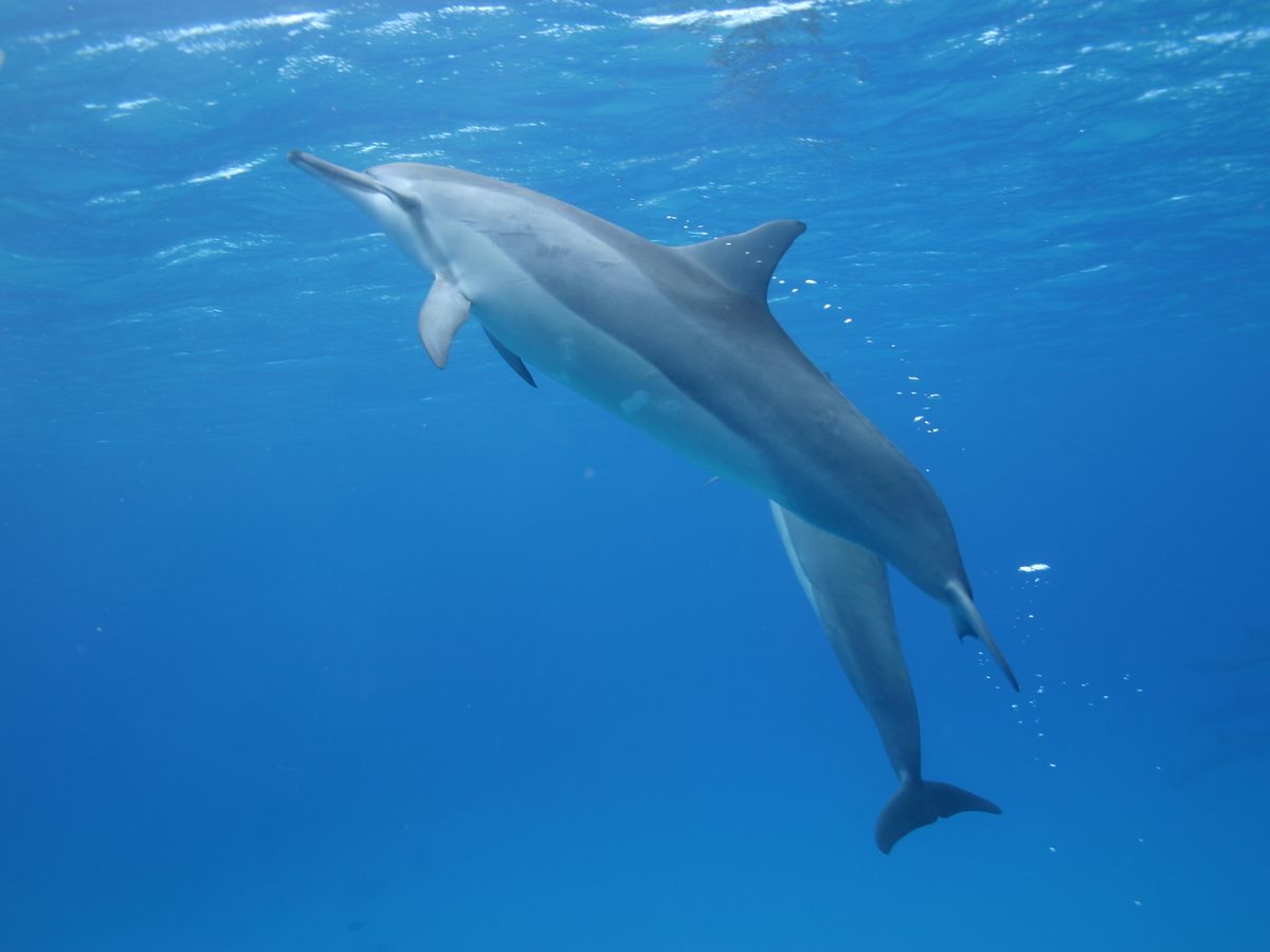 潜ると、イルカの群れが!!