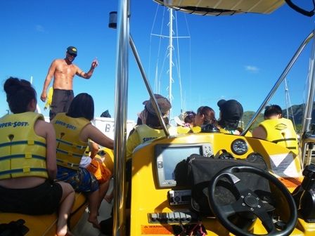 数あるイルカツアーの中で、私立イルカ中学を選んだのは、開始時間が遅い事と、スピードボートでしかも海に入り易そうな形であった事。食事時間等が書いてなくイルカやかめに合う事が第一目的に思えた事でした。