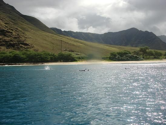 ハワイ入り、ほんの数時間で、イルカに会え、