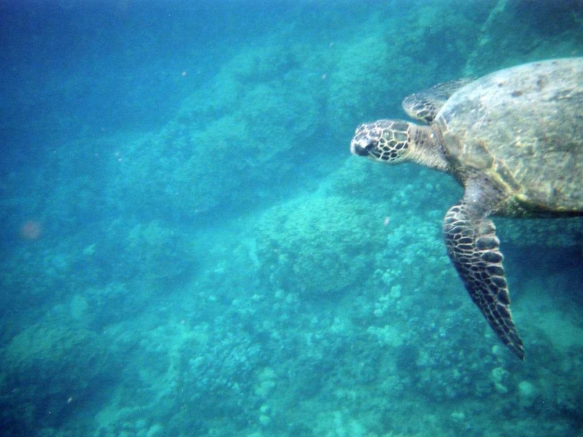出航して早々にイルカ出現!の報せ。数は少なかったが親子で寄り添って(授乳?)泳ぐ姿が見られて感動。あせって追いかけると向こうも速いスピードで逃げていくけれど、ゆったりと泳ぐと彼らのリラックスした姿も間近に見られる。そのあと観にいった亀ハウスには大小5~6頭のウミガメが休んでいて、時々息継ぎに浮かんでくると急接近してぶつからないようにこっちが身をかわすほどだった。シュノーケリングをしたことがない人は、少しでも練習してから行くとより楽しめる。これからハワイに行く人がいたら、ぜひすすめたいツアーだ。
